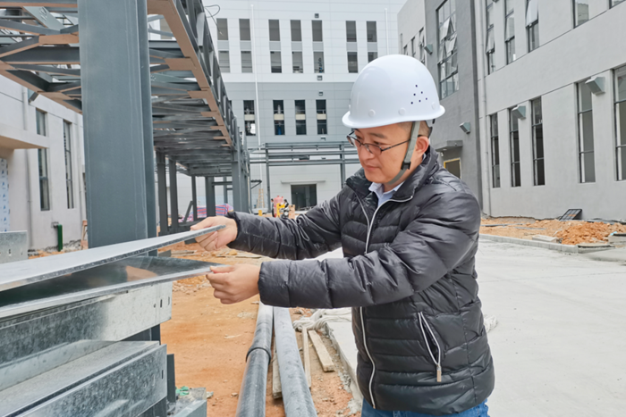 土建施工啟動以來,王磊幾乎每天都會到建設(shè)現(xiàn)場協(xié)調(diào)進(jìn)度、現(xiàn)場勘察、組織聯(lián)絡(luò)等。廣東夏季炎熱,項目現(xiàn)場的臨時辦公場所是由集裝箱改建,內(nèi)部悶熱難耐、條件艱苦,王磊毫無怨言、心無旁騖,一心撲在建設(shè)工作上,積極圍繞工程建設(shè)進(jìn)度、工程質(zhì)量、施工安全等方面開展現(xiàn)場督導(dǎo)檢查,對發(fā)現(xiàn)問題嚴(yán)抓整改到位。