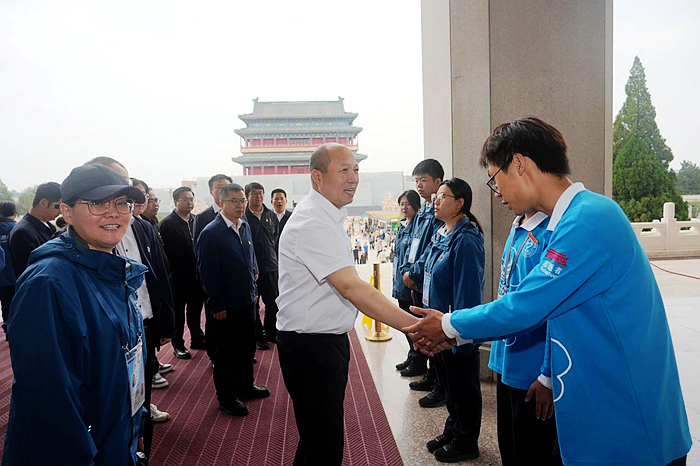 5月23日,北京化工集團黨委常委、副總經(jīng)理韓寶海一行來到毛主席紀念堂,看望慰問開展志愿服務(wù)的技師學院青年志愿者。
