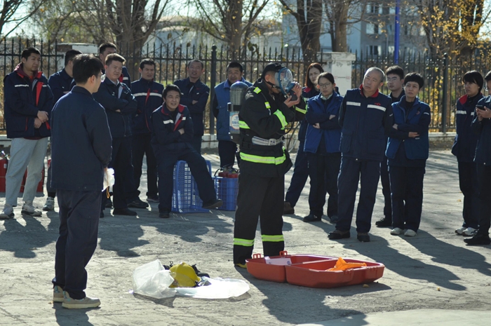化研院首先進行了模擬辦公樓起火疏散演練。培訓伊始,消防站專業(yè)人員結合近年來典型的火災案例,深入淺出地講解了火災危害、報警程序、逃生注意事項等極具實用性的方式方法。
