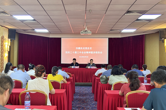 8月5日,華騰東光黨總支召開(kāi)學(xué)習(xí)貫徹黨的二十屆三中全會(huì)精神專題宣講報(bào)告會(huì),黨總支書記、董事長(zhǎng)、總經(jīng)理宋鋼作宣講報(bào)告。