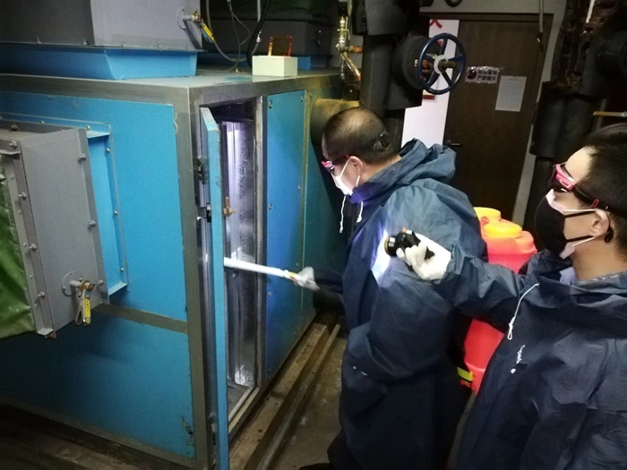 在大廈大堂,公司黨總支書記、總經理、副總經理、運營總監(jiān)現場協(xié)調指導,及時與公司辦公室溝通物資供應,事業(yè)部班子成員現場指揮調度,中控操作、樓內保潔消毒、空調消毒、客戶服務等各方面工作緊張有序推進。
