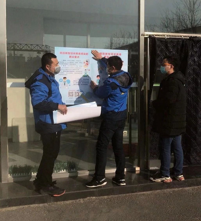 2月3日,北搪商務大廈商務中心的全體員工,在負責人朱娜的帶領下,檢查并協(xié)助物業(yè)管理公司對辦公區(qū)域進行消毒和清潔,對12層以下的客戶進行摸底排查,挨家挨戶進行在崗人數調查并記錄上報事業(yè)部,在暫時無人辦公的客戶門上張貼關于做好疫情防控的緊急通知,同時以電話或微信方式,將通知有關內容傳達給客戶,提示加強對去往疫情高發(fā)地區(qū)及接觸過疫情高發(fā)區(qū)的員工的教育,做好相應隔離防護措施,隨時溝通各自單位的防疫工作的最新動態(tài)。