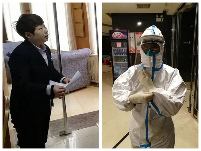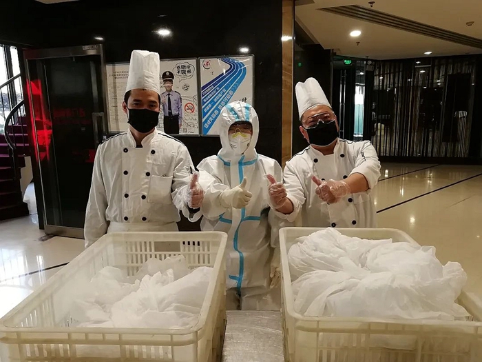 此次專項任務(wù)最關(guān)鍵的環(huán)節(jié),就是送餐和收納生活垃圾。接送餐飲,收納垃圾都在每個房間的門口。當送餐和收納垃圾這一艱巨任務(wù)擺在大家面前的時候,東方賓館的同志們沒有退縮,紛紛要求接下這一任務(wù),特別是共產(chǎn)黨員、餐飲部經(jīng)理周麗麗,共產(chǎn)黨員、辦公室主任張艷紅,強烈要求主動上崗。賓館黨支部考慮到周麗麗專業(yè)性更強,最終決定由她來負責(zé)每天的送餐和生活垃圾收納工作。