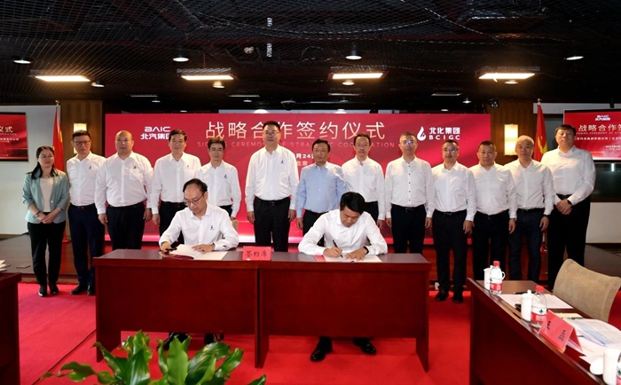 9月24日上午,北京化工集團(tuán)與北汽集團(tuán)戰(zhàn)略合作協(xié)議簽約儀式在北京化工集團(tuán)總部舉行。北京化工集團(tuán)黨委書記、董事長陳宇,黨委副書記、董事、總經(jīng)理?xiàng)钚褫x;北汽集團(tuán)黨委書記、董事長張建勇出席簽約儀式。北京化工集團(tuán)副總經(jīng)理張榮寰,北汽集團(tuán)黨委常委、副總經(jīng)理胡漢軍代表雙方簽署協(xié)議。