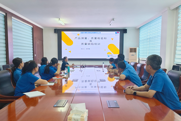 為進一步提升青年職工質(zhì)量意識,強化質(zhì)量管理水平,9月21日,華騰橡塑安徽華騰公司以青年實訓基地為平臺開展質(zhì)量標準專項培訓。安徽華騰質(zhì)量部部長吳琴梅圍繞生產(chǎn)流程、生產(chǎn)全過程檢驗、產(chǎn)品質(zhì)量檢測等多方面內(nèi)容,結(jié)合實際案例進行了詳細講解。