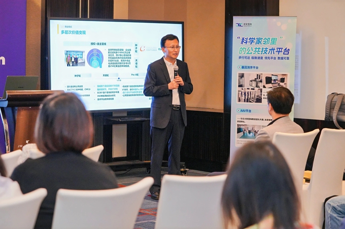 論壇中,北化生科黨總支書記、總經(jīng)理申海成從專業(yè)運(yùn)營(yíng)空間、專業(yè)運(yùn)營(yíng)團(tuán)隊(duì)和專項(xiàng)產(chǎn)業(yè)基金等多個(gè)方面,深度聚焦以核酸藥物為代表的五大細(xì)分賽道,向與會(huì)者詮釋“國際生物島”獨(dú)有的“1公里科學(xué)家鄰里”生態(tài),并通過高標(biāo)準(zhǔn)技術(shù)平臺(tái)、專項(xiàng)基金、技術(shù)審評(píng)、專屬空間、高科技人才和公共服務(wù)六大生態(tài)要素協(xié)同,系統(tǒng)闡釋從“0-1-N”的產(chǎn)業(yè)化路徑。