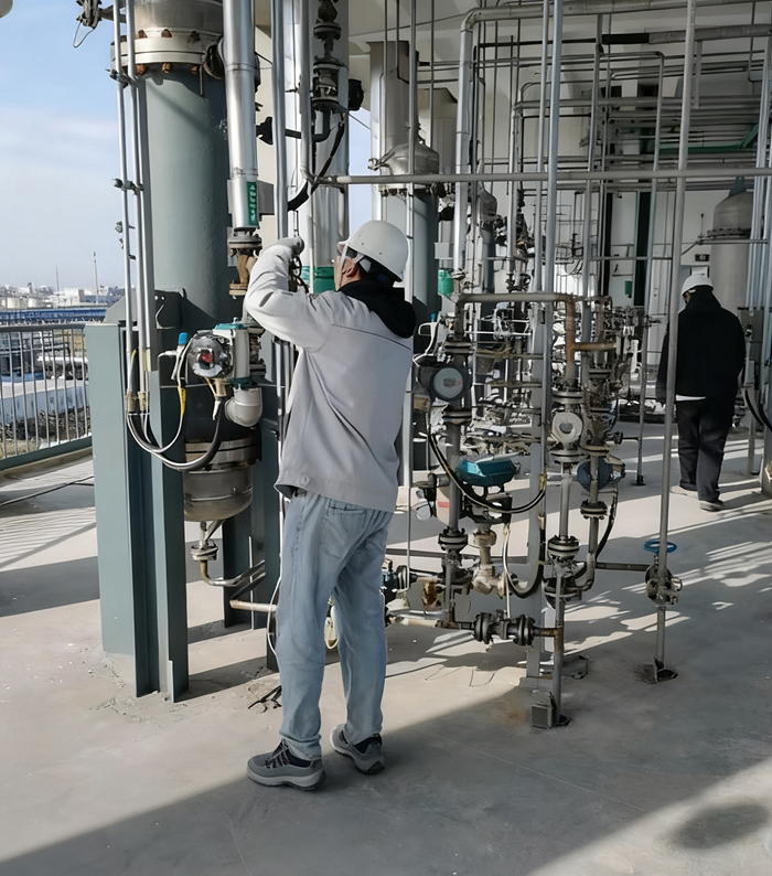 10月20日,華騰通廣高純?cè)噭╉?xiàng)目水聯(lián)運(yùn)試車正式啟動(dòng)。此次水聯(lián)運(yùn)覆蓋精餾、灌裝等全流程,計(jì)劃持續(xù)5天,通過模擬物料精餾、灌裝等情形,驗(yàn)證設(shè)備性能、管道密封性及自控系統(tǒng)穩(wěn)定性。