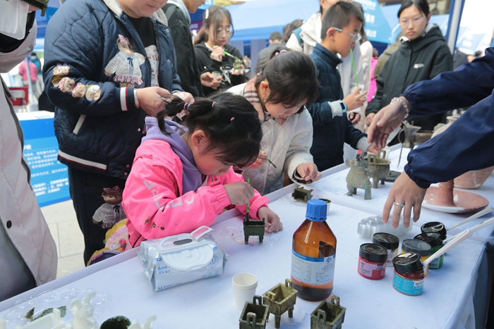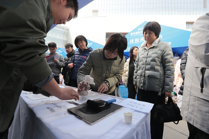 技師學(xué)院專門組織相關(guān)專業(yè)師生展演的文物修復(fù)體驗項目受到廣泛關(guān)注。高超的專業(yè)技能、熱情的服務(wù)、精彩的現(xiàn)場講解與操作體驗,贏得眾多市民駐足觀看,成為一個亮眼的“打卡點”。與會嘉賓也被吸引,紛紛蒞臨技師學(xué)院展位,親自體驗現(xiàn)場展示項目,詳細了解技師學(xué)院相關(guān)辦學(xué)成果,并給予高度評價。