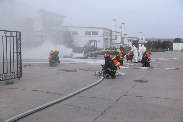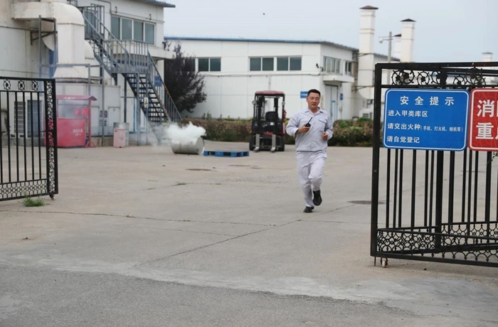 為進一步筑牢安全生產(chǎn)防線,壓緊壓實安全生產(chǎn)責(zé)任, 6月底,華騰化工組織開展了2024年危險化學(xué)品火災(zāi)事故應(yīng)急演練。此次演練模擬場景為危險化學(xué)品庫房入庫作業(yè)時發(fā)生丙酮泄露著火,開展了火災(zāi)上報與先期處置、人員疏散逃生、微型消防站和消防救援隊滅火等環(huán)節(jié)的演練科目。