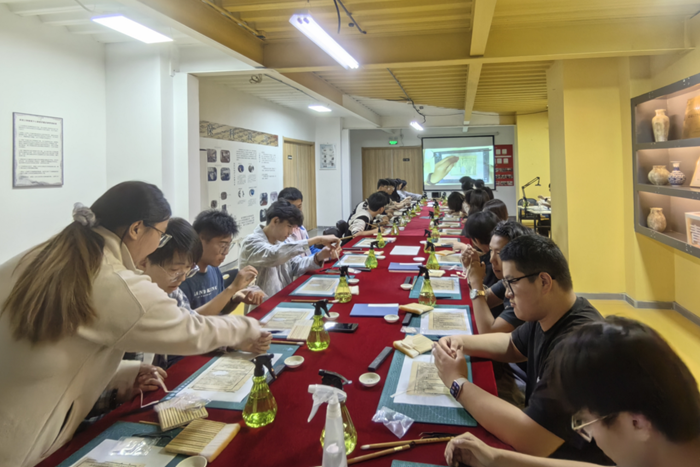參觀過程中,通過講解員的細(xì)致介紹,師生們不僅欣賞到了連環(huán)畫作品的精湛技藝和獨(dú)特魅力,還深入了解了每幅作品背后的歷史背景和創(chuàng)作故事。大家還在博物館古籍修復(fù)老師的講解和帶領(lǐng)下,開展了非遺古籍修復(fù)研學(xué)課程。此次參觀不僅讓活動參與者領(lǐng)略到了連環(huán)畫的藝術(shù)魅力,更激發(fā)了大家的文化自信和民族自豪感。