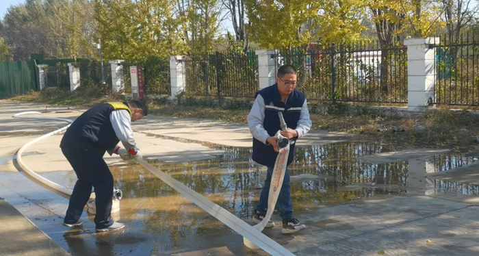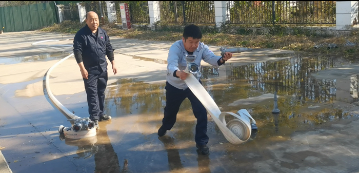 同時,華騰化工還專門組織了消火栓實操。“先接水帶、再開閥門、最后對準目標出水!”在安全員的指導(dǎo)下,員工兩人一組協(xié)作,快速完成水帶連接、水槍連接等步驟,水柱精準噴射至指定區(qū)域,整個過程有條不紊。