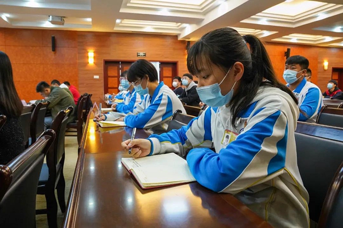 在黨課現(xiàn)場,聶晶深情回顧了140多個寒冬酷暑里40位下沉干部舍小家顧大家,堅守在村鎮(zhèn)社區(qū)戰(zhàn)“疫”一線,為全市疫情防控貢獻出國企人硬核力量和擔(dān)當(dāng)?shù)母腥耸论E。聽課師生被以聶晶為代表的下沉干部們在高風(fēng)險地區(qū)毫不退縮、勇往直前,筑牢疫情防控堅固防線的事跡所深深感動。