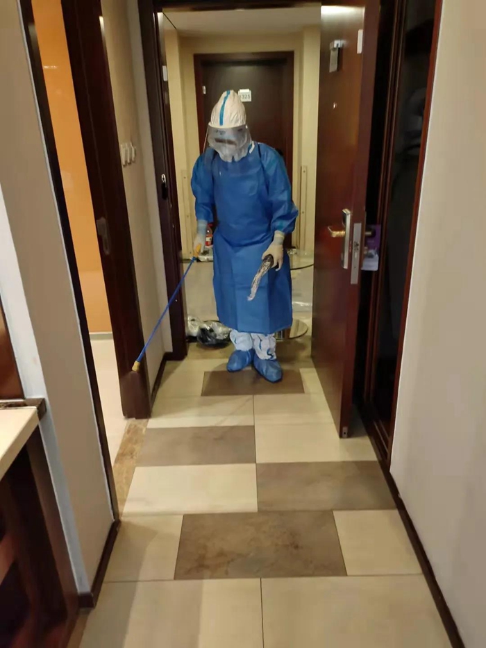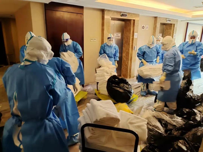 困難和挑戰(zhàn)首先體現(xiàn)在前臺(tái)入住、離店手續(xù)、客房清潔的工作流程的較大變化上。前臺(tái)每次接到指揮部通知即將有新隔離人員入住或隔離人員解除隔離時(shí),他們都需要全副武裝穿上防護(hù)服在前臺(tái)等候。每天都有隔離人員解除隔離,離開(kāi)酒店后,消殺組會(huì)對(duì)客房、公共區(qū)域進(jìn)行全面消毒??头糠?wù)組在隔離人員退房后,對(duì)所有隔離人員使用的物品嚴(yán)格按照感染性廢物進(jìn)行處理,處理完畢后重新打掃恢復(fù)房間使用,這對(duì)于從未從事過(guò)醫(yī)療行業(yè)的員工來(lái)講,是一種全新挑戰(zhàn),在接受了醫(yī)護(hù)人員的緊急培訓(xùn)后,他們嚴(yán)格履行操作流程,對(duì)100多個(gè)房間進(jìn)行了打掃翻房處理,保證了后續(xù)隔離觀察人員的順利入住。