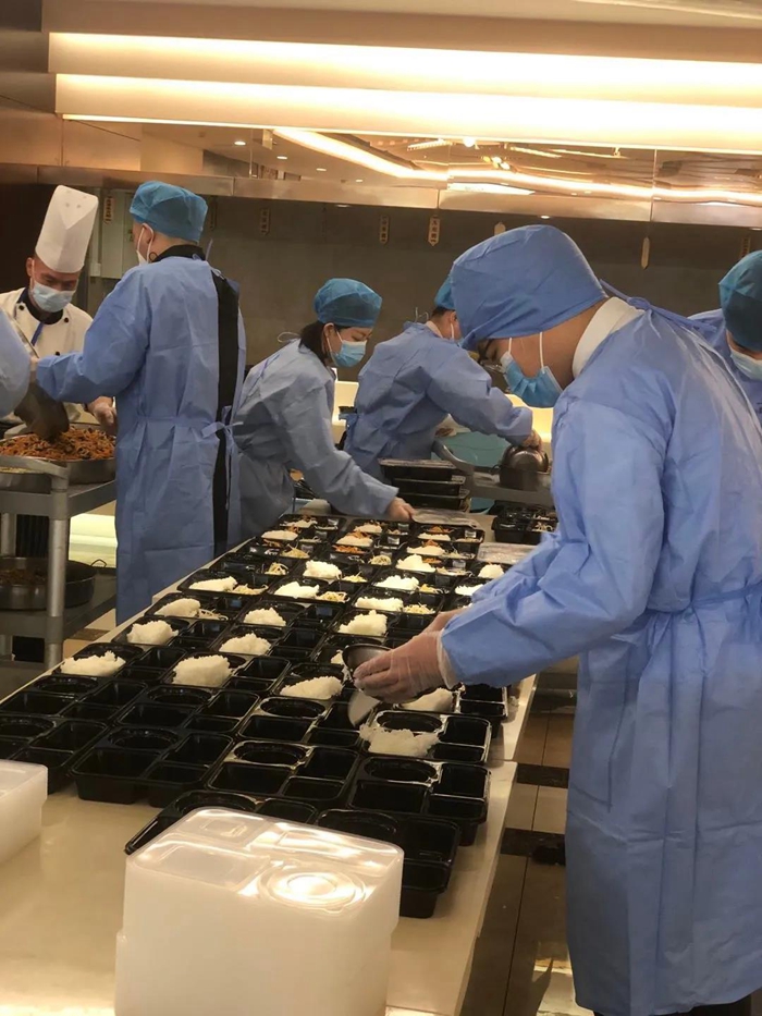 酒店第一時(shí)間成立防疫領(lǐng)導(dǎo)小組,在領(lǐng)導(dǎo)小組正副組長(zhǎng)王強(qiáng)、鄭冰、白江指揮調(diào)度下,各項(xiàng)準(zhǔn)備工作有條不紊地進(jìn)行:對(duì)酒店進(jìn)行分區(qū)管理,將酒店整體劃分為生活區(qū)、緩沖區(qū)和隔離區(qū),并按照相應(yīng)區(qū)域,張貼了相應(yīng)顏色標(biāo)識(shí),明確要求各區(qū)人員只允許在本區(qū)域內(nèi)活動(dòng),嚴(yán)禁跨區(qū)工作、串區(qū)走動(dòng);酒店負(fù)責(zé)人白江帶領(lǐng)美居酒店指揮部成員開(kāi)展員工培訓(xùn)、物資準(zhǔn)備工作。物資準(zhǔn)備是個(gè)細(xì)活兒,要為客人準(zhǔn)備足夠14天用的各類物品用品,包括大量洗漱用品、足量的飲用水、體溫計(jì)等;針對(duì)餐食衛(wèi)生、病毒消殺、客房服務(wù)、垃圾清運(yùn)等各方面工作制定明確的工作方案;要求領(lǐng)導(dǎo)小組人員要24小時(shí)輪崗值班,黨員和骨干帶頭堅(jiān)守崗位,直至完成隔離觀察任務(wù)。