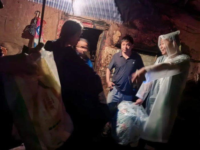 汛情就是命令。面對突如其來的洪水,本就日夜堅守在村委會的李東,與村委委員一起連夜趟著洪水,去多戶村民家中查看水位和房屋漏雨情況,在冒雨拉網(wǎng)式檢查中,李東和村委委員先后將2戶有安全隱患房屋內(nèi)的6名村民,連夜轉移至村委會臨時安置點。當大家要喘口氣歇歇腳兒時,28日凌晨3時許得到消息,位于村口的小商店出現(xiàn)險情,60多歲的老兩口被困店內(nèi)。接到消息,李東和村委委員緊急出發(fā)。由于洪水流速非??欤麄冃⌒囊硪淼胤鲋鴫w前行。在到達商店后,此時洪水已經(jīng)淹沒房屋門檻灌入店內(nèi)。面對緊急情況,李東和村委會干部們?nèi)饩缺焕Ю先恕@顤|在前面小心探路,另外兩人護住老人,在大雨中最終將兩位老人撤離到安全地帶。