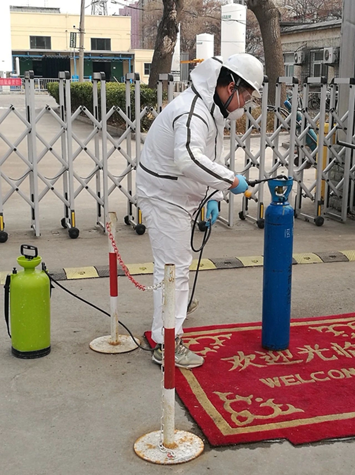 疫情發(fā)生以來,華騰冀春按照北化集團黨委要求,全力做好疫情防控工作。公司在3天時間內(nèi)購入口罩1000個,消毒液16桶,測溫儀2個,高壓噴水壺2個,保障公司全體值班人員每天2個口罩的替換需求。自疫情爆發(fā)以來,華騰冀春無一例確診和疑似病例。