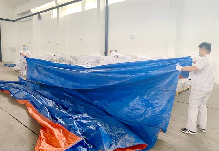 各部門(mén)參演人員分工明確,布置警戒線、放置沙袋、遮蓋苫布、啟動(dòng)排水裝置,演練按照方案穩(wěn)步推進(jìn)。