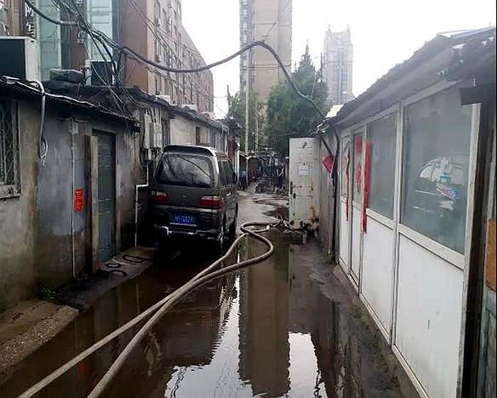 近日京城強對流天氣頻繁出現(xiàn),這給北搪公司所轄的化建家屬宿舍區(qū)大郊亭3號院居民生活帶來不利影響。因該院屬于老舊宿舍區(qū),地勢低洼,很容易形成積水,尤其是暴雨天氣,若不及時處理積水,給宿舍區(qū)的居民生活、出行帶來很大困擾,嚴重時還會帶來安全隱患。