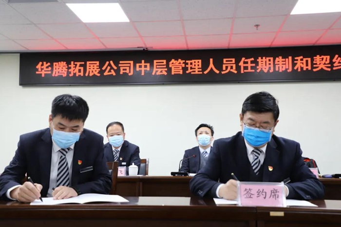 經(jīng)華騰拓展公司黨總支、董事會研究決定,在公司全體中級管理人員中推行任期制和契約化管理。此次簽約,將進(jìn)一步激發(fā)企業(yè)發(fā)展活力,調(diào)動中級管理人員工作積極性,傳導(dǎo)壓力、賦能基層。