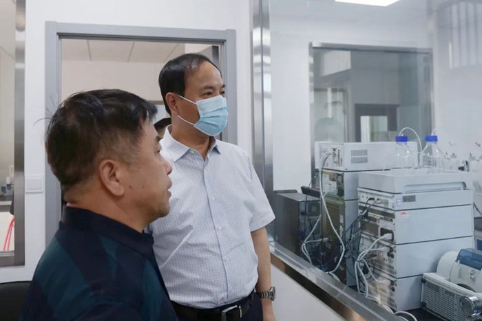 王國(guó)華來(lái)到化研院科方孵化器辦公樓,深入到實(shí)驗(yàn)室、檢測(cè)室現(xiàn)場(chǎng),全面檢查、詳細(xì)詢問(wèn)工作人員安全生產(chǎn)、疫情防控各項(xiàng)措施落實(shí)情況。
