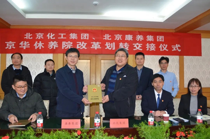 北京康養(yǎng)集團(tuán)副總經(jīng)理秦有明、副總會計師秦磊,北京化工集團(tuán)北化房地產(chǎn)公司黨總支書記、董事長高振宇,集團(tuán)相關(guān)部室負(fù)責(zé)人出席交接儀式。北京化工集團(tuán)與康養(yǎng)集團(tuán)代表在劃轉(zhuǎn)資產(chǎn)及有關(guān)資料清單上簽字,雙方還與自愿安置到康養(yǎng)集團(tuán)的職工簽署了新的勞動合同。