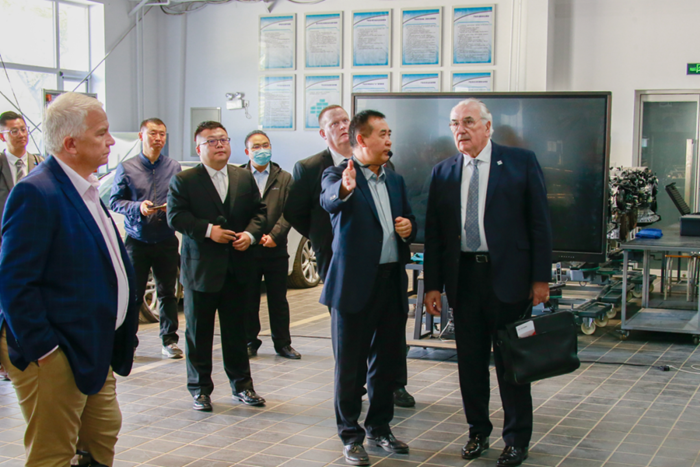 按照精心設(shè)計的接待路線,英國職業(yè)技能訪問團(tuán)一行先后來到學(xué)院數(shù)控車間、數(shù)控世賽基地、文物修復(fù)實訓(xùn)室等多個教學(xué)場所參觀。