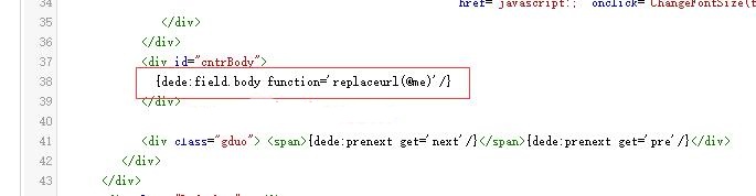 替換成:{dede:field.body function='replaceurl(@me)'/}